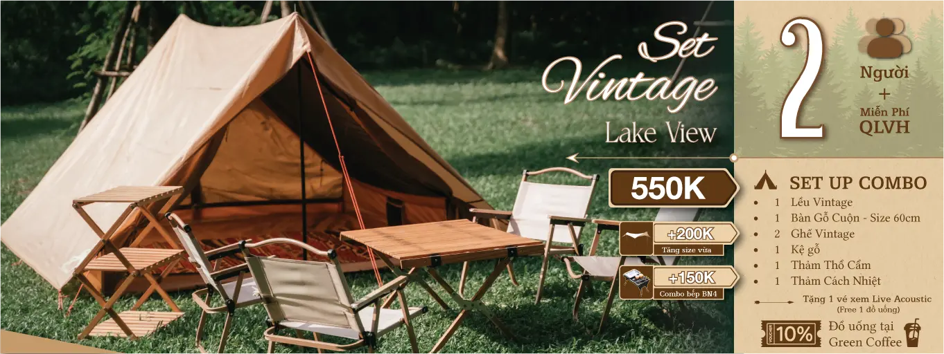 Không gian được setup sẵn tại khu GLAMPING ZONE, tách biệt với các nhóm khác, không bị chắn view, đảm bảo sự riêng tư và thư giãn tối đa.